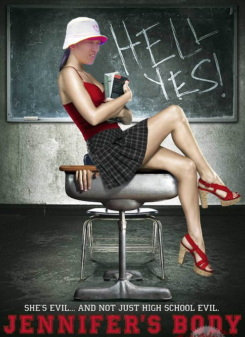 | 小露酥胸的安海瑟薇 … Helenna,不滿足的在微網誌 Plurk 說要玩妖嬌身材版。無限台南 找了好幾部電影劇照,比對手中所有的 Helenna 相片,都很難符合妖嬌的需求。 好不容易找到一部喜劇恐怖電影,是由變形金剛 2 (Transformers – REVENGE OF THE FALLEN) 的女主角梅根福克斯 (Megan Fox) 主演,台灣預計於 10 月底上映的「辣的要命 - Jennifer's Body」勉強可移花接木,請 Helenna 暫時屈就一下: |